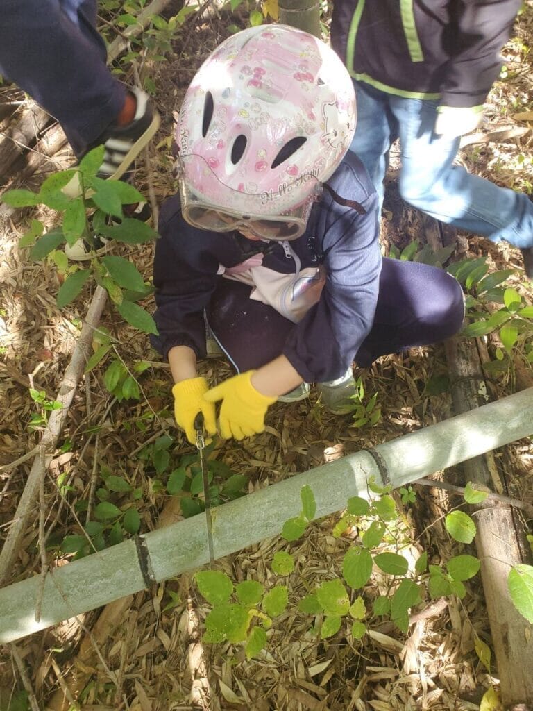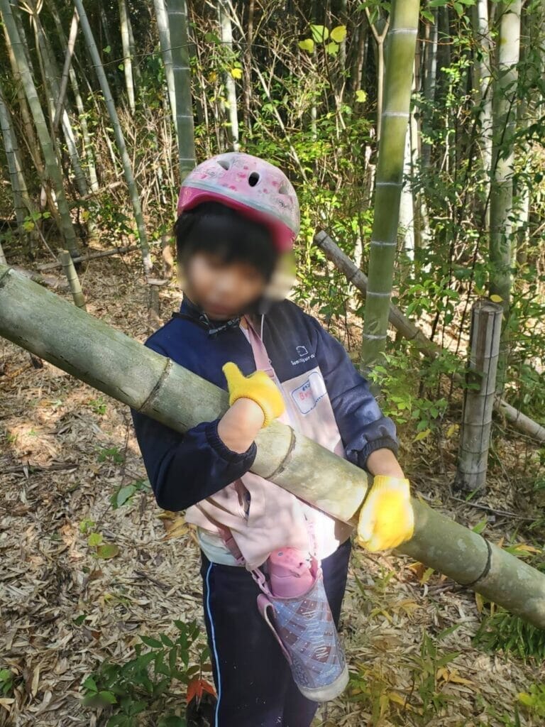 毎年、小学校で行われている行事で、この竹を使って、小学校にて炭が作られています。
