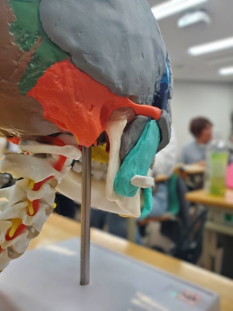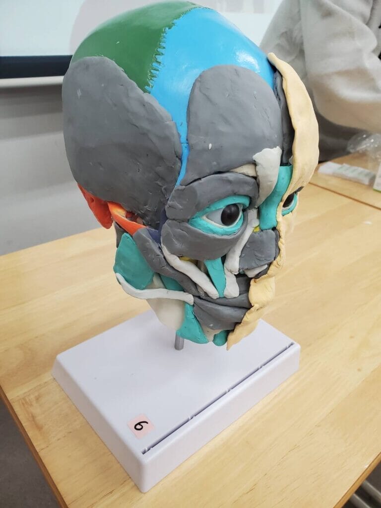 内容は元々表情筋ってのが細かくて難しいものなので大変でした。実際に骨に粘土で作った筋肉をつけていって説明してもらえたのでわかりやすかったですが・・・覚えるのが大変ですね。